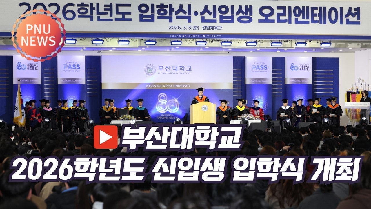 “우리가 부산대 80돌 입학생들, AI 시대 이끄는 당당한 주인공이 되겠습니다!”부산대 「2026학년도 신입생 입학식」 개최 - 3일 오후 교내 경암체육관에서 입학식 및 오리엔테이션…신입생 7,752명 입학- 롯데자이언츠 응원단, 가수 최예나 축하 공연 등 ‘재미있고 유익한’ 입학식 눈길 - 최재원 총장 “부산대 80주년 성취 바탕으로, ‘The PNU Way’와 AI 혁신 통해 도전과 성장 지원”2026년 올해 뜻깊은 개교 80주년을 맞은 부산대학교(총장 최재원)는 3월 3일 오후 교내 경암체육관에서 「2026학년도 신입생 입학식」을 개최하고, 신입생들의 힘찬 출발을 축하했다.